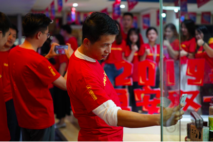 10号晚上电商办公室也组织了一场别具生面的“我在德扑之星双十一”文化活动为双十一销售助威,运营中心副总裁许清池,共享中心副总裁刘莹,女性健康产业发展部总裁许自淡等集团多位领导也赶赴现场,在零点时一同等待双十一销售拉开序幕。